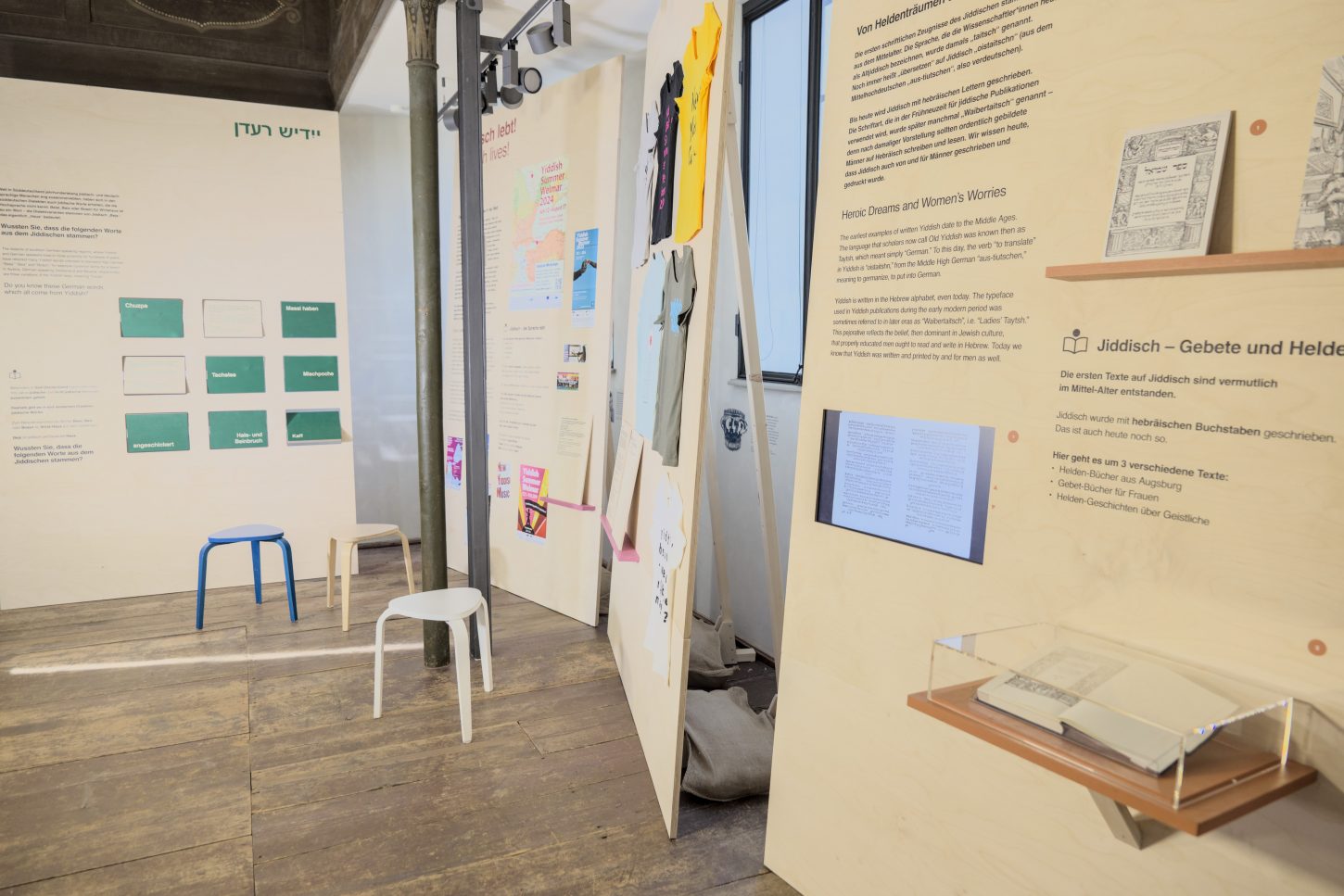 Rund acht Jahrhunderte lang wurde in Bayern Jiddisch gesprochen. „Boazn“, „Kaff“ oder „schmusen“ – viele Wörter erinnern noch heute an das enge Zusammenleben jüdischer und nichtjüdischer Menschen in Schwaben. Die Ausstellung lädt dazu ein, die Spuren einer fast vergessenen Sprache zu entdecken.